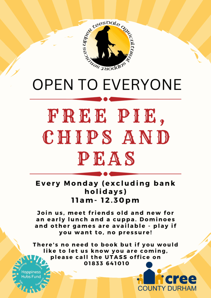 There’s no need to book, but if you would like to let us know you are coming, please call the UTASS office on 01833 641010 or email Gina, gina@utass.org